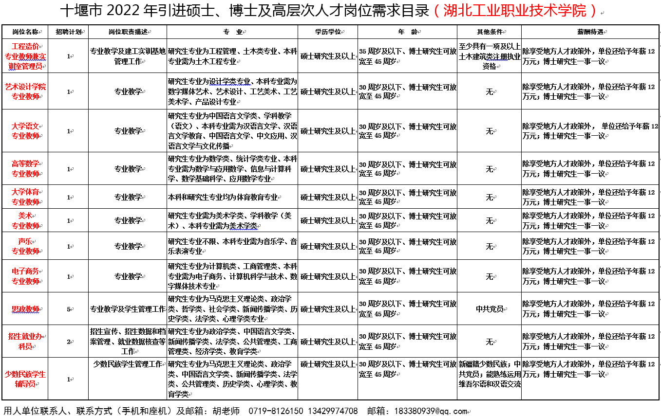 01 十堰市2022年引进硕士、博士及高层次人才岗位需求目录(教育类)