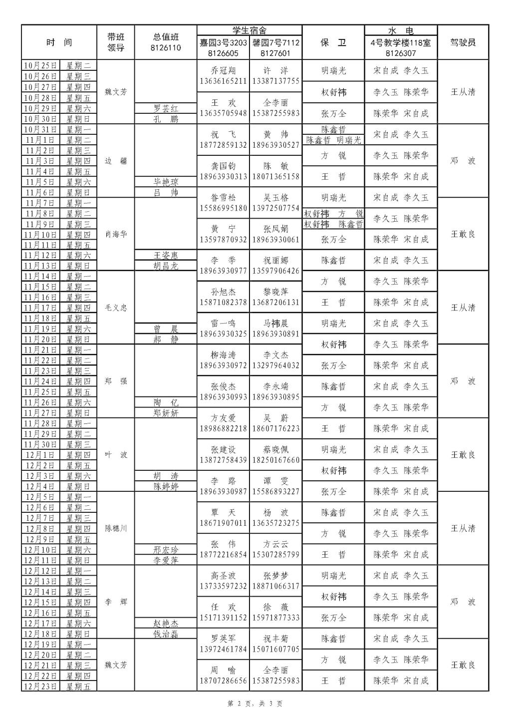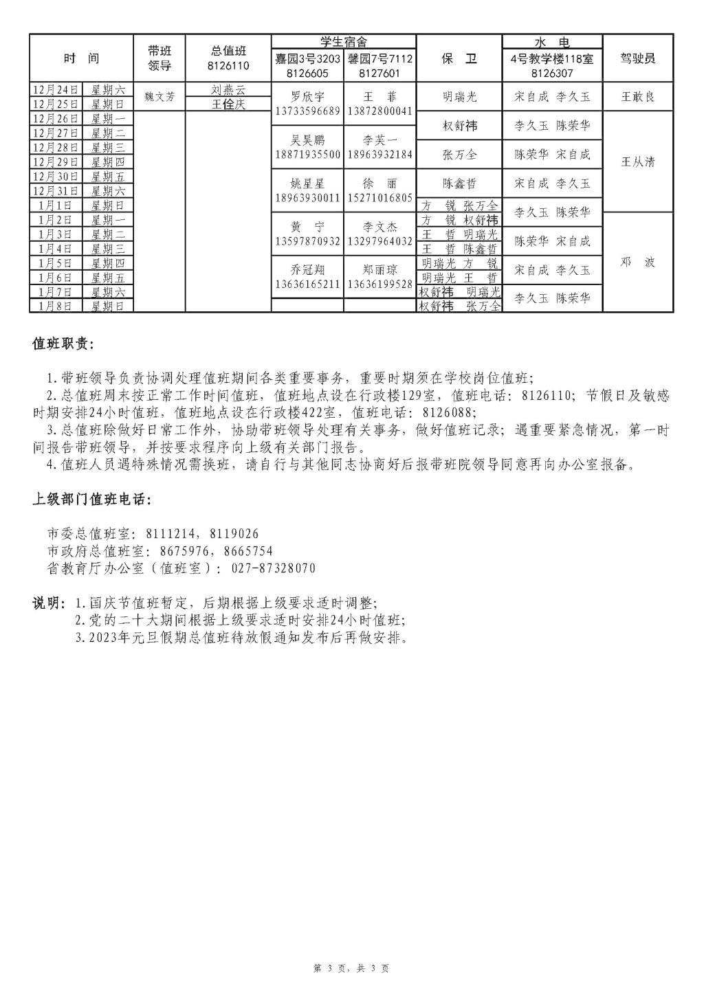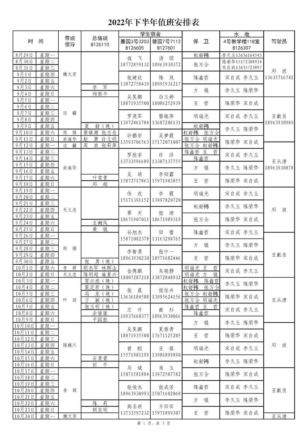 2022年下半年全校值班表