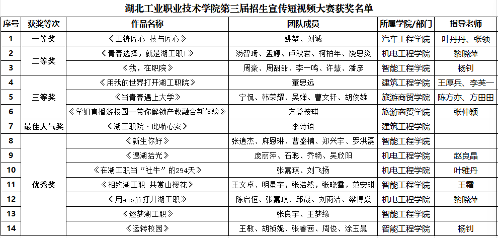 根据我校《关于举办第三届“百草园”大学生网络文化节暨招生宣传短视频大赛的通知》半岛官网,截至2025年7月10日,共收到短视频作品68件。经初审、复审及专家终审,评出获奖作品14件,现予以公示(名单附后)。